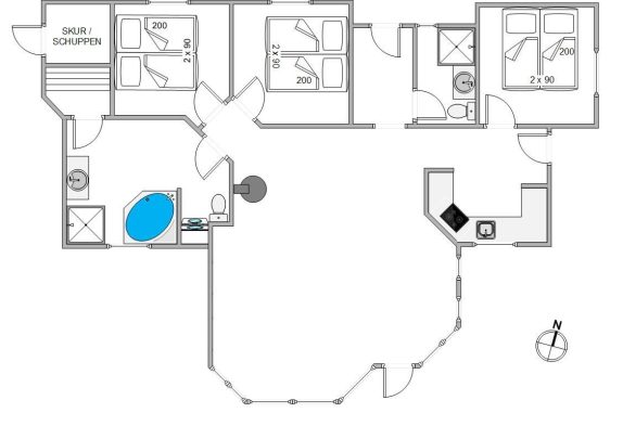 Im Kirkeflod 24 in Houstrup liegt dieses großzügige Ferienhaus mit Platz für bis zu 6 Personen. Es ist mit allen modernen Faszilitäten eingerichtet und schafft einen schönen Rahmen für erholsame Urlaubstage. Die Küche ist offen im Wohnraum integriert, so dass die Familie auch beim Zubereiten der Mahlzeiten, vielleicht mit leckerem Fisch oder Krabben aus der Nordsee, zusammen sein kann.