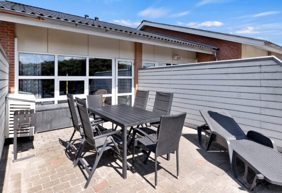 Vom Wohnraum aus habt Ihr Zugang zur abgeschirmten Terrasse, die mit bequemen Gartenmöbeln ausgestattet ist. Beim Sonnenbaden könnt Ihr die nahegelegene Nordsee rauschen hören.