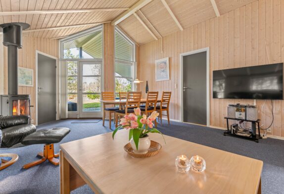 Das helle und gemütliche Interieur mit warmem Teppichboden im Wohnbereich macht euch das An- und Runterkommen wahrlich einfach. Gerne ergattert man sich nach dem Anfeuern des Kaminofens einen Platz nahe der knisternden Flammen – ob auf einem der Sofas oder am Esstisch, ihr habt die freie Wahl.