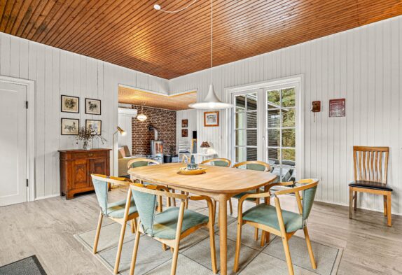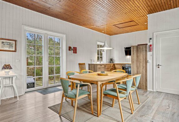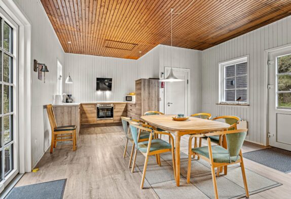 Bereits beim Betreten eures Urlaubsdomizils, werdet ihr von einem hellen und einladenden Interieur begrüßt. Das Haus ist mit einer bunten Mischung aus neuen und älteren Möbeln eingerichtet, was ihm viel Persönlichkeit aber auch Gemütlichkeit gibt. Die moderne Küche ist in hellen Farbtönen gehalten und bietet ausreichend Platz zum Kochen. Vom Essbereich aus habt ihr direkten Zugang zum Außenbereich. Die großen Fensterflächen geben einen schönen Blick auf den Garten frei und lassen gleichzeitig viel Licht in den Raum.