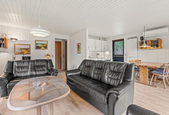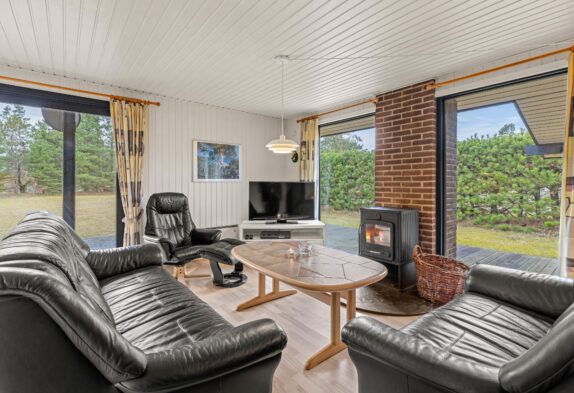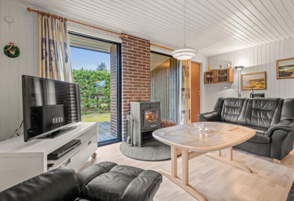 Das Herzstück des Ferienhauses ist der Wohnbereich, in dem der Kaminofen an kühleren Tagen für wohlige Wärme sorgt. Hier könnt ihr es euch auf dem Sofa bequem machen, euch in eine spannende Lektüre vertiefen oder einen entspannten Spieleabend mit euren Liebsten verbringen.