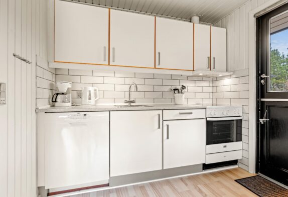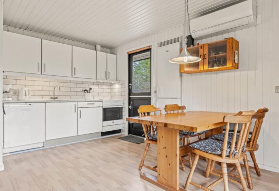Die offene Küche ist mit allem ausgestattet, was ihr für eine stressfreie Selbstversorgung braucht, inklusive einer Spülmaschine. Direkt daneben befindet sich der Essbereich, an dem ihr gemeinsam essen und über eure Urlaubserlebnisse plaudern könnt.