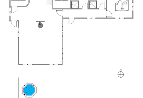 Das Ferienhaus liegt auf einem schönen, leicht hügeligen Naturgrundstück. Die Terrasse des Ferienhauses ist gut angelegt und lädt nicht nur zum Sonnenbaden und Entspannen ein, sondern eignet sich auch bestens für lange und gemütliche Grillabende mit Familie und Freunden. Darüber hinaus könnt ihr hier ein wenig Wellness einplanen – dank Außenwhirlpool und Außendusche* ist für extra Entspannung und Wohlbefinden gesorgt.