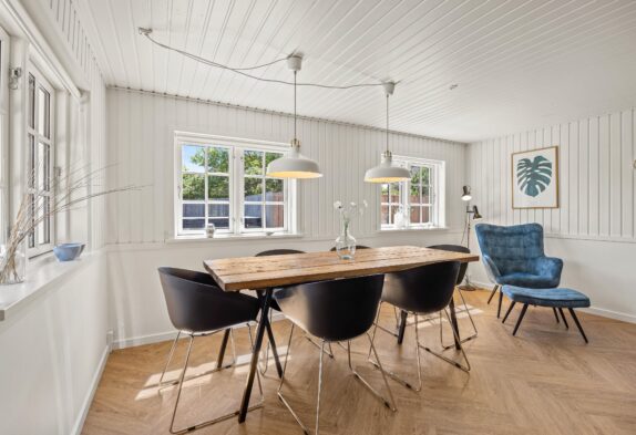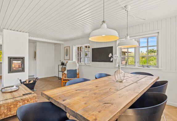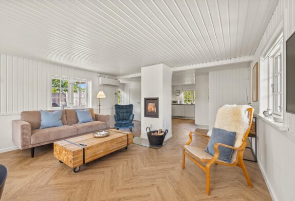 Sobald ihr durch die Tür tretet, werdet ihr euch in diesem gemütlich eingerichteten Ferienhaus mit den hellen Wänden wohl- und willkommen fühlen. In der gut ausgestatteten Küche mit Induktionskochfeld könnt ihr köstliche Mahlzeiten zaubern, wobei der Geschirrspüler die lästigen Aufgaben erledigt. Somit bleibt euch mehr Zeit für Spiel und Spaß mit der Familie oder einfach, um auf dem Sofa zu relaxen, während das Feuer im Ofen knistert und die Hunde nach einem langen Lauf am Strand, gemütlich eingerollt schlummern.