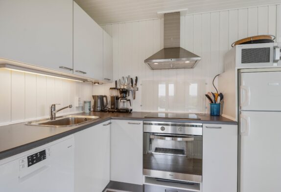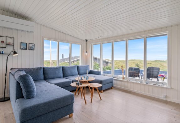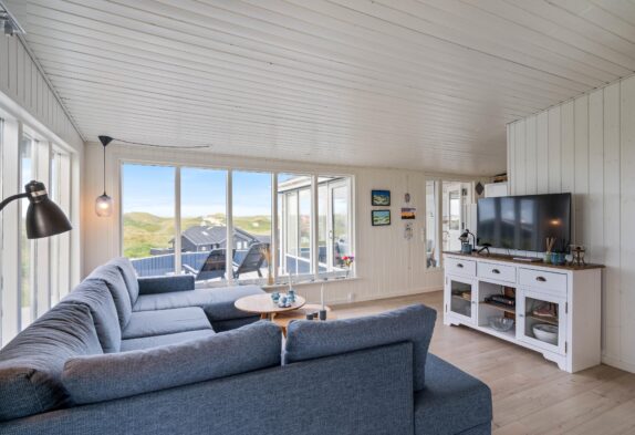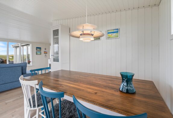 Die Einrichtung des Ferienhauses ist im skandinavischen Stil gehalten, hell, freundlich und mit Liebe zum Detail. Ihr werdet euch direkt nach eurer Ankunft wohlfühlen. Die vielen und großen Fenster lassen viel Sonnenlicht herein und geben euch die Möglichkeit, die tolle Panoramaaussicht den ganzen Tag zu genießen. Das Wohnzimmer ist offen gestaltet und mit Esszimmer und Küche verbunden. Ihr könnt es euch auf dem großen Sofa bequem machen, gemeinsam Kochen und am Esstisch die kommenden Urlaubstage planen.