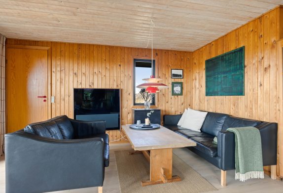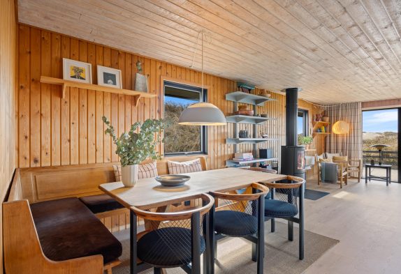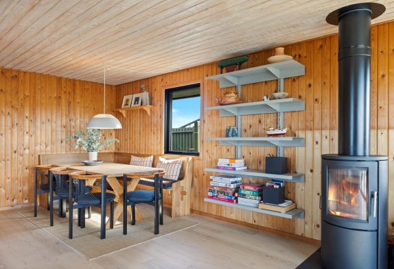 Das Ferienhaus bietet Platz für bis zu 5 Personen und auch euer Hund ist hier herzlich willkommen. Durch die große Fensterfront nach Westen, fällt viel Licht in das Ferienhaus und schafft eine behagliche Atmosphäre. Nach einem langen Tag an der frischen Meeresluft geht es schnell nach Hause, wo ihr neue Energie auf dem Sofa mit einem guten Buch und dem knisternden Holzofen im Hintergrund tanken könnt, so dass sich Wärme und die gemütliche Urlaubsstimmung schnell verbreiten. Während das Abendessen zubereitet wird, können die Kinder und der Hund unbesorgt auf der geschlossenen Terrasse spielen und das Gebiet auf eigene Faust erkunden.