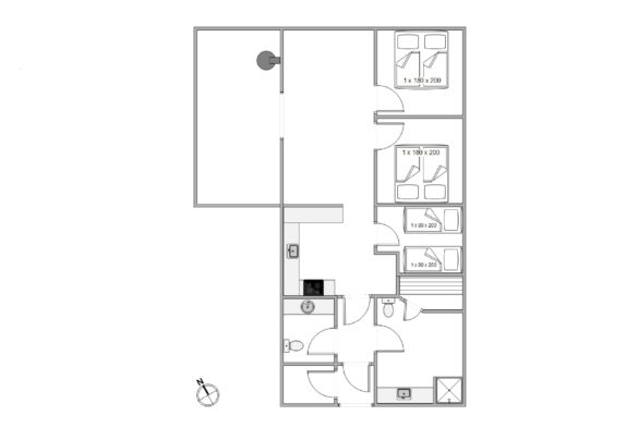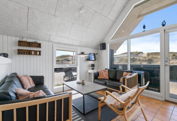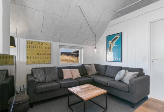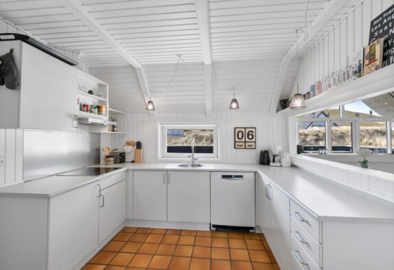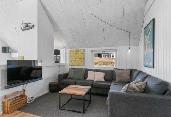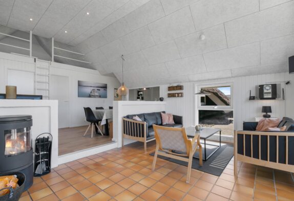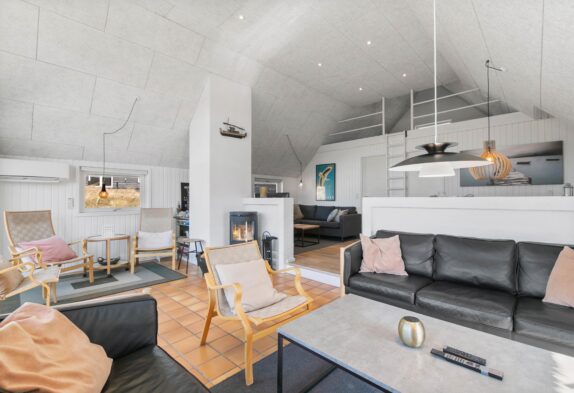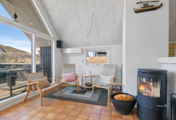 Das Ferienhaus begrüßt euch mit einem offenen Wohnkonzept. Ob beim Kochen oder beim Pläneschmieden am Esstisch, keiner wird ausgeschlossen. Hier herrscht eine gute Atmosphäre, wo ihr schöne Ferien verbringen könnt. Wenn ihr gemeinsam am Abend gekocht habt, übernimmt die Spülmaschine den Abwasch und ihr könnt zum gemütlichen Teil des Abends übergehen. In der kühleren Jahreszeit, wenn der Wind ums Haus tost, dann macht den Holzofen an und genießt die kuschelige Ferienhausatmosphäre. Für eine angenehme und konstante Raumtemperatur sorgt die energisparende Luft-zu-Luft Wärmepumpe.