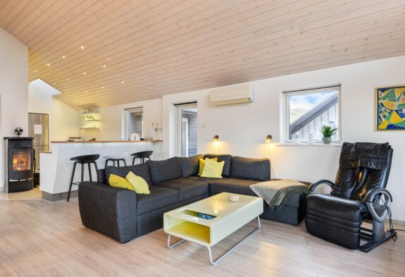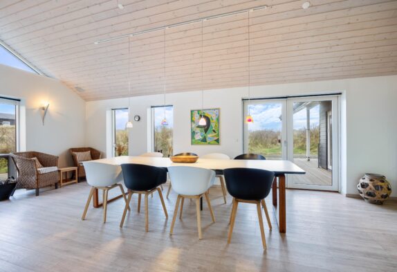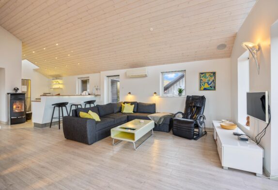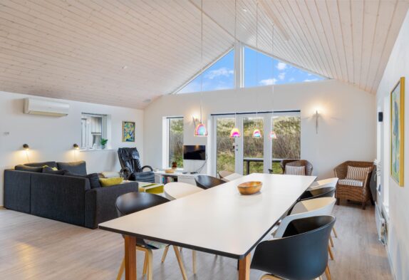In diesem schönen Ferienhaus wird es euch an nichts fehlen. Ihr werdet ganz bestimmt viele schöne Abende zusammen in dem großen Wohn- und Essbereich verbringen – nicht nur wenn es darum geht das Abendessen zusammen in der offenen und gut ausgestatteten Küche zu zubereiten, sondern auch, wenn ihr euch abens um den Esstisch oder auf dem Sofa sammelt, um einen schönen Ferientag mit einem Kartenspiel ausklingen zu lassen.