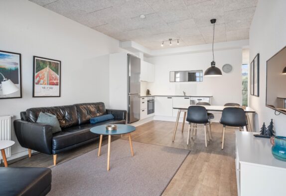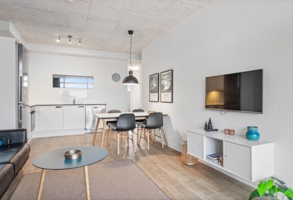 Die 67 m² grosse Ferienwohnung mit heller, freundlicher Einrichtung bietet den besten Rahmen für einen Urlaub in moderner Umgebung zwischen Meer und Fjord. Die Wohnung eignet sich bestens für Paare und Familien sowie deren Hund.