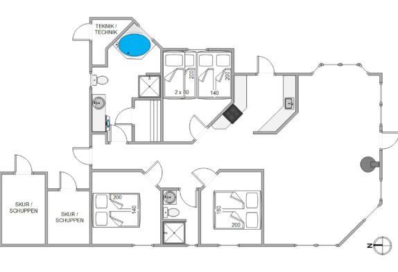 In Troldedalen 37 wurde dieses einladende Ferienhaus aus Holz im klassischen Sommerhaus-Look mit einer extravaganten Inneneinrichtung gebaut. Hier erwartet euch nicht nur eine helle und moderne Einrichtung – euch steht auch ein eigener kleiner Wellnessbereich mit Sauna und Whirlpool zur Verfügung.
