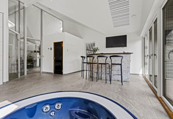Entspannt euch im Außenwhirlpool unter dem Sternenhimmel, während euch ein leckerer Drink an der Bar zubereitet wird oder genießt einen echten Wellness-Abend mit einem Besuch in der Dampf- oder normalen Sauna mit einem relaxten Abschluss auf einer der Gartenliegen. Die Außendusche steht von 1. April bis 1 November zur Verfügung.