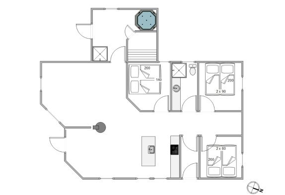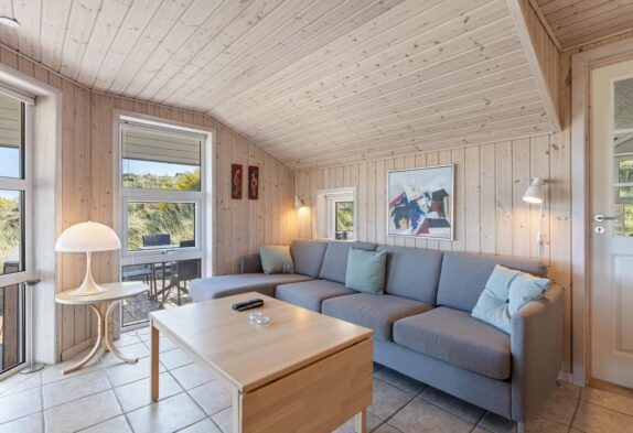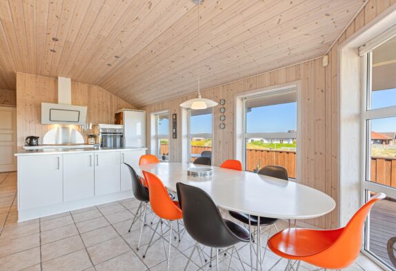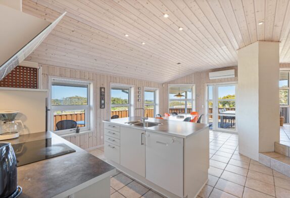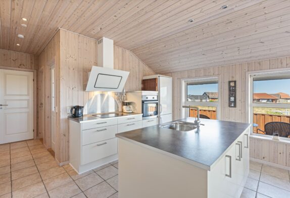 Das helle freundliche Haus ist mit modernen geschmackvollen Möbeln eingerichtet. Der grosse Wohnraum ist mit der modernen Küche kombiniert, die mit allem ausgestattet ist, was Ihr zum Zubereiten leckerer Ferienmahlzeiten benötigt. Die grossen Panoramafenster des Wohnraums sorgen dafür, dass der ganze Raum wunderschön lichtdurchflutet ist. Von hier aus habt Ihr eine herrliche Aussicht über den Ringkøbing Fjord.