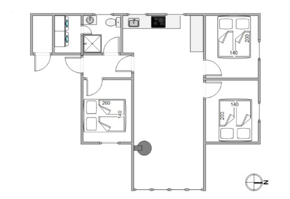 Im Ferienhaus findet ihr drei Schlafzimmer, die jeweils mit einem Bett der Größe 140 m x 200 m ausgestattet sind. Das Badezimmer verfügt über eine Fußbodenheizung, sodass der Tag mit warmen Füßen starten kann.