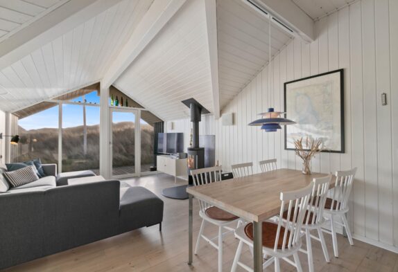 An kühleren Tagen könnt ihr es euch auf dem Sofa bequem machen und durch die grossen Panoramafenster beobachten, wie der rauhe Westwind die Dünengräser zerzaust. Die wohlige Wärme des knisternden Holzofens sorgt für eine entspannende Ferienstimmung. Die energiesparende Luft-zu-Luft Wärmepumpe sorgt für eine angenehme konstante Raumtemperatur im Wohnbereich.