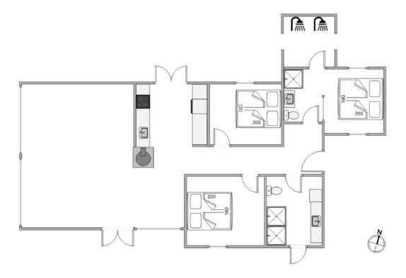Die klaren Linien, das moderne Interieur kombiniert mit den aufeinander abgestimmten Farben und dem rohen rationellen Stil erzeugt eine besondere Atmosphäre. Die Mischung aus rauer Look, klaren Linien und die Farbwahl wiederspiegeln die besondere Landschaft der dänischen Westküste. Das Ferienhaus verfügt über 3 Schlafzimmer, von denen das eine nur durch eine Glaswand vom modernen Badezimmer getrennt ist.