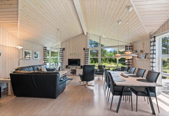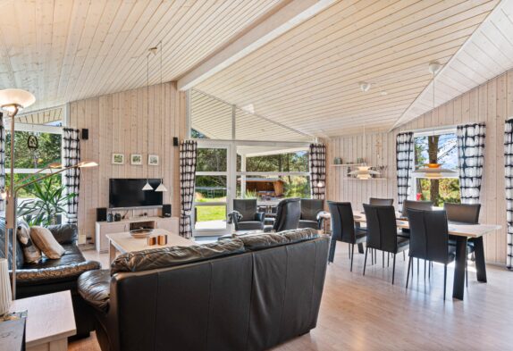 Mit Sauna, Whirlpool und einem extra Gästebad, fällt es nicht schwer, in diesem typischen Sommerhaus, richtig zu entspannen. Hier findet ihr die perfekte Umgebung für einen tollen Urlaub. Mit der schönen, großen und offenen Küche sowie einem Wohnzimmer mit viel Platz für Alle, einer gemütlichen TV-Ecke sowie dem traditionellen Kamin steht gemütlichen Stunden nichts im Wege.