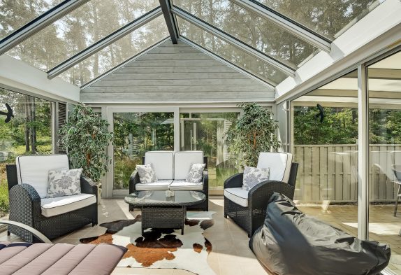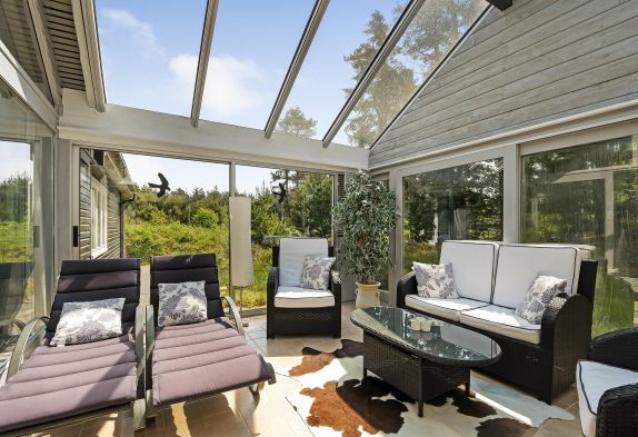 Der Wintergarten ist ein absolutes Highlight Ungeachtet der Jahreszeit könnt Ihr hier die herrliche Aussicht auf die umliegende Natur geniessen. Macht es Euch mit einem guten Buch gemütlich oder geniesst zu zweit ein Gläschen Wein, wenn sich vor den grossen Panoramafenstern die Dunkelheit über die Landschaft senkt.