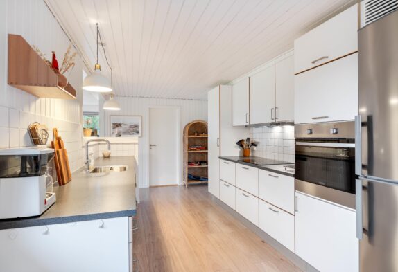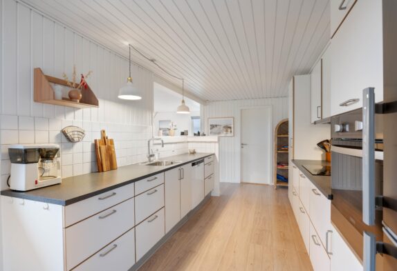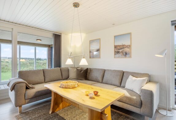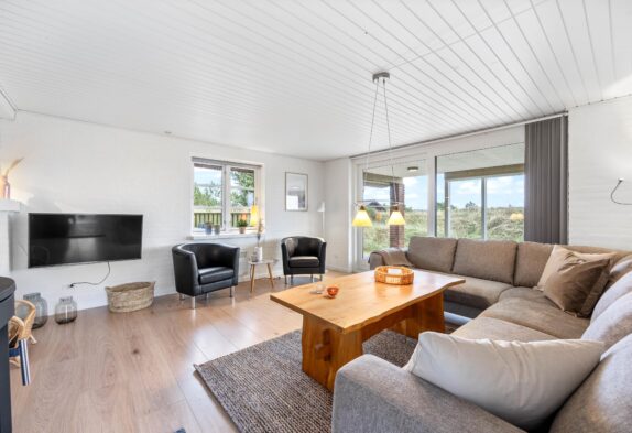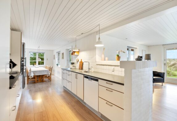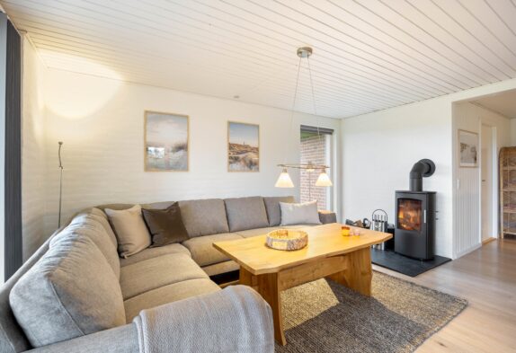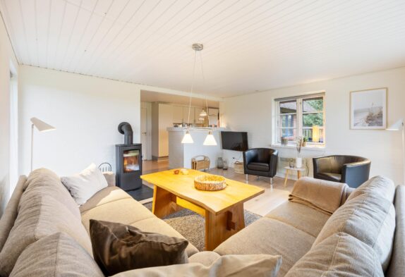 Das Ferienhaus wurde 2023 renoviert und verbindet heute auf angenehme Weise moderne und klassische Elemente. Die hellen Decken und Wände vermitteln einen freundlichen und einladenden Eindruck. Die Küche mit Spülmaschine und der Essbereich sind offen mit dem Wohnbereich gestaltet, sodass hier keiner ausgeschlossen wird. Ob ihr gemeinsam kocht oder gemütlich am Tisch sitzt, hier habt ihr Gelegenheit viel Zeit gemeinsam zu verbringen. Der gemütliche Wohnraum, mit den gemauerten Ziegelsteinwänden, den gemütlichen Möbeln und der weißen Decke, lädt zu vielen schönen gemeinsamen Stunden ein. Der Holzofen unterstreicht die Gemütlichkeit und die energiesparende Luft-zu-Luft Wärmepumpe sorgt dazu für ein angenehmes Raumklima im Wohnraum.