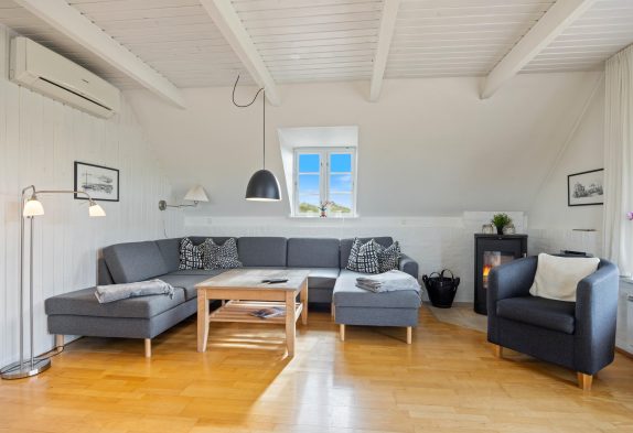 Das Ferienhaus bietet Platz für bis zu 6 Personen mit 3 schönen Schlafzimmern. Die Küche und Wohnzimmer sind geöffnet und im großen Wohnzimmer zusammengeführt, wo die ganze Familie versammelt werden kann. In der Ecke steht der klassische Holzofen, der an späten Abenden und kühleren Tagen, Wärme und gute Stimmung verbreitet.
