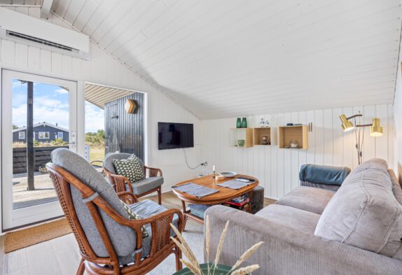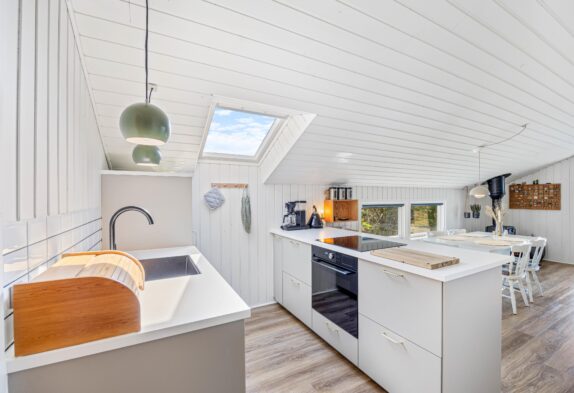 Die hellen Holzwände- und Decken, kombiniert mit den gemütlichen Möbeln und der Aussicht auf die umliegende Dünenlandschaft versetzen Euch vom ersten Augenblick an in eine herrliche Ferienstimmung.Im Herzen des Ferienhauses erwartet euch eine ganz besondere Neuerung – Die Küche wurde im Jahr 2025 vollständig neu gebaut – und das im typisch skandinavischen Stil. Die Küche fügt sich harmonisch in das Gesamtbild des Hauses ein und lädt zum gemeinsamen Kochen, Genießen und Verweilen ein.