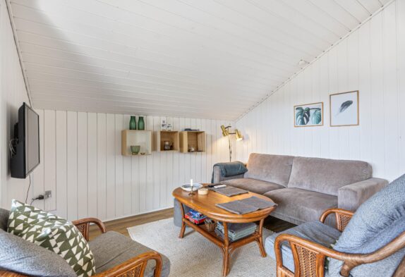 An kühleren Tagen könnt Ihr es Euch vor dem knisternden Kaminofen gemütlich machen und die wohlige Wärme geniessen, während draussen vor den grossen Panoramafenstern der rauhe Westwind das Dünengras zerzaust.
