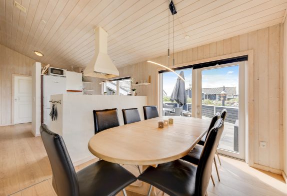 Die gut ausgestattete Küche mit Geschirrspüler und gemütlicher Essecke ist zentral im Ferienhaus gelegen, von hier habt ihr einen guten Überblick und könnt die Unterhaltung im Wohnzimmer begleiten.