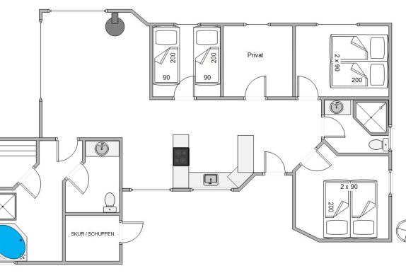 Dieses Ferienhaus ist perfekt geeignet für eine große Familie – oder 2 Familien, die zusammen Urlaub machen möchten. Es gibt zwei Badezimmer mit Fliesenböden und Fußbodenheizung. Es gibt zudem ganz praktisch eine Waschmaschine und einen Trockner. In dem einem Badezimmer gibt außerdem noch einen Whirlpool und eine Sauna, wo ihr wirklich entspannen könnt – vielleicht nach einem langen Spaziergang am Strand? Die energiesparende Wärmepumpe hilft, den Energieverbrauch niedrig zu halten.