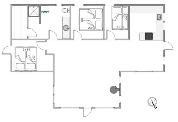 Das Wohnzimmer und die offene Küche bilden zusammen den Aufenthaltsraum, in dem ihr euch zusammen aufhalten könnt und euren Urlaub genießen könnt. Am Esstisch könnt ihr zusammen essen oder einige Spieleabende veranstalten. Besonders der Holzofen sorgt für eine tolle Stimmung, wenn ihr abends die Wärme vor dem Ofen genießen könnt.