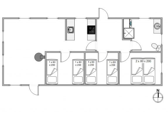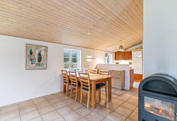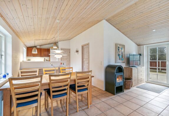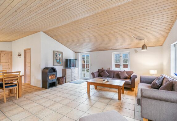 Das Herzstück des Hauses bildet das große Wohnzimmer zusammen mit der offenen Küche, in der ihr zusammen kochen und am Esstische Abendbrot essen könnt. Auf der Couch könnt ihr wunderbar entspannen und die Beine hochlegen. In den etwas kühleren Monaten kann der Holzofen für angenehme Wärme und tolle Atmosphäre sorgen.