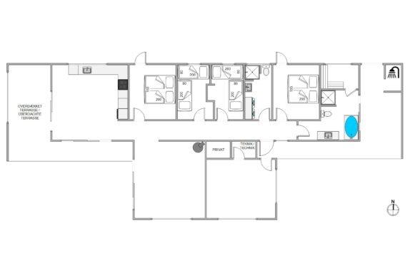 Von den insgesamt 130 m2 Terrassenfläche sind 65 m2 überdacht, damit ihr auch bei unbeständigerem Wetter draußen die Seeluft genießen könnt. Mit einem Glas Wein in der Hand oder einem Softgetränk für die Kleinen könnt ihr das Meeresrauschen hören und die Beine hochlegen. Am Abend sorgt der Grill für ein fantastisches Abendessen bei untergehender Sonne oder unter dem Sternenhimmel.