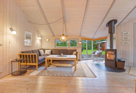 Freundliche Einrichtung und praktische Ausstattung – mit Kaminofen im Harbo Stages Vej 9