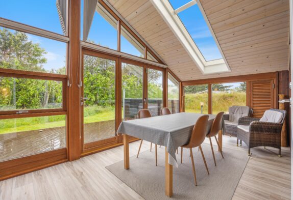 Unweit vom Stadtzentrum Søndervigs entfernt liegt dieses tolle und charmante Ferienhaus für 4 Personen. In schöner Holzfarbe gestrichen glänzt das Haus im Harbo Stages Vej 9 nicht nur von Außen, sondern auch von Innen überzeugt es durch eine hauseigene Sauna und einen Whirlpool. Und sollte das Wetter doch nicht so gut sein, sodass man auf der großen Terrasse sitzen kann, könnt ihr trotzdem im Wintergarten die Natur um euch herum genießen.