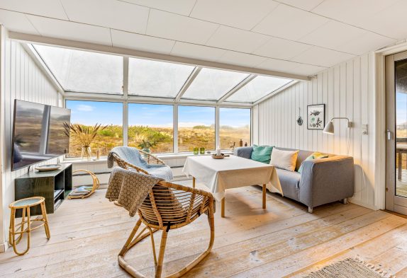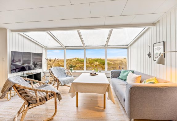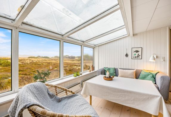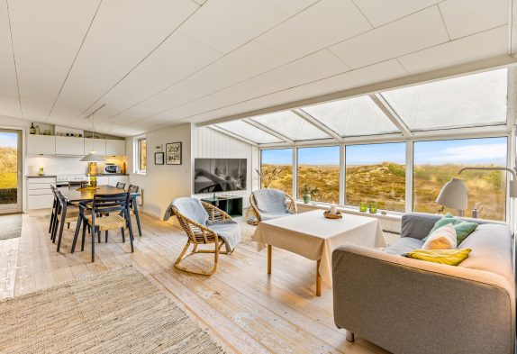 Von der großen Fensterfront Richtung Westen kannst du auch vom Sofa der Natur ganz nah sein. Es ist einfach einzigartig in der Umgebung von Holmsland Klit den Urlaub zu verbringen- zu jeder Jahreszeit.
