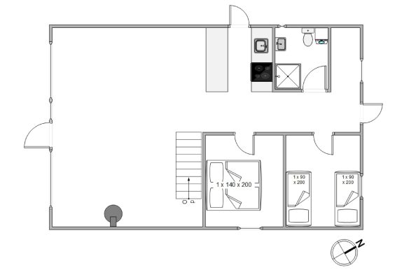 Ausser den beiden gemütlichen Schlafzimmern gibt es einen offenen Schlafboden, auf dem sich die jüngeren Gäste sicherlich sehr wohl fühlen werden. Aus dem kleinen Fenster habt Ihr eine tolle Aussicht über die umliegende Dünenlandschaft.