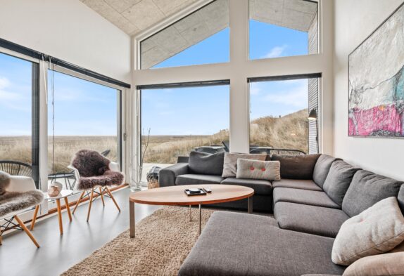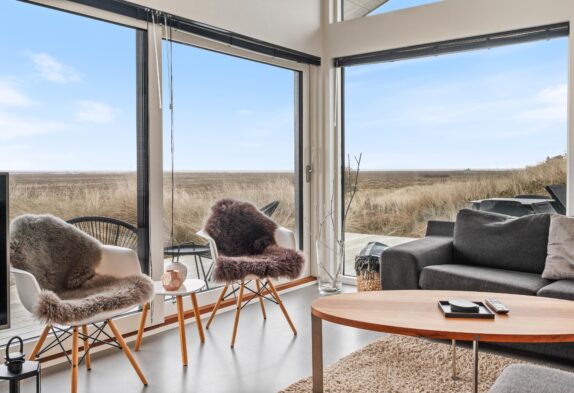 Die vielen großen Fensterabschnitte bieten einen fantastischen Panoramablick und laden sowohl die Sonnenstrahlen als auch die wunderschöne Landschaft in das Ferienhaus ein, so dass ihr euch auch an den etwas kühleren Tagen wie mitten in der Natur fühlen könnt.