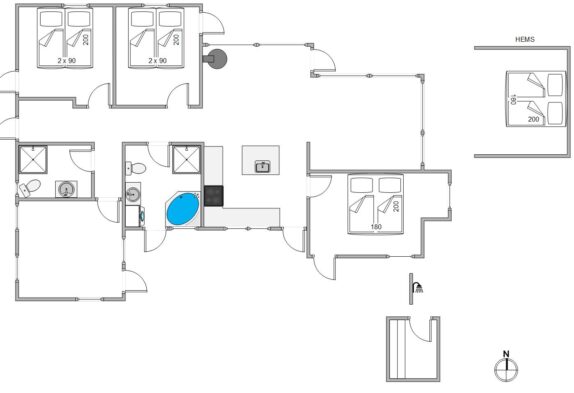 Dieses einzigartige Ferienhaus im Tornbjerrevej 4 bietet Platz für bis zu 6 Urlauber, die in 3 Schlafzimmer mit jeweils einem Doppelbett und auf einem Dachboden mit 2 zusätzlichen Einzelbetten, Platz finden. Hier gibt es auch 2 geschmackvoll eingerichtete Badezimmer, eines davon mit einem Wellnessbereich.
