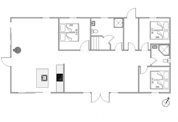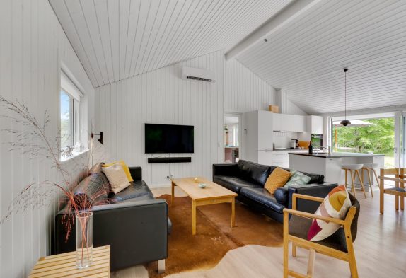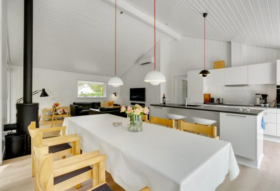 Dieses Ferienhaus bietet Platz für bis zu 6 Personen, hält 3 Schlafzimmer sowie auch zwei Badezimmer – eines davon mit Sauna – bereit, was gerade morgens angenehm ist, wenn sich alle frisch für den Tag machen möchten.