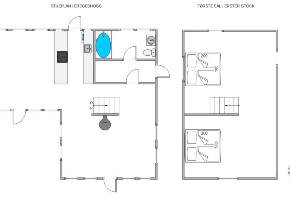 Die beiden Schlafbereiche liegen im oberen Stockwerk und werden durch eine halbe Wand getrennt.