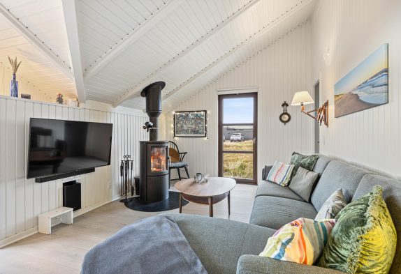 Dieses urgemütliche Ferienhaus liegt im Bjerregårdsvej 434 und bietet Platz für bis zu 5 Personen. Das Ferienhaus hat eine fantastische Lage, nur 250 Meter vom Strand entfernt, sodass ihr viele, schöne Spaziergänge entlang der Westküste machen könnt. Nach so viel frischer Luft und Wind im Haar, genießt ihr die wohlige Wärme vor dem Holzofen bestimmt sehr gerne.
