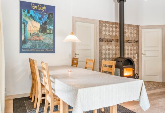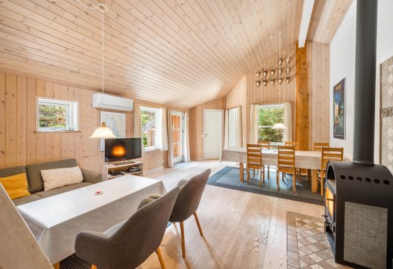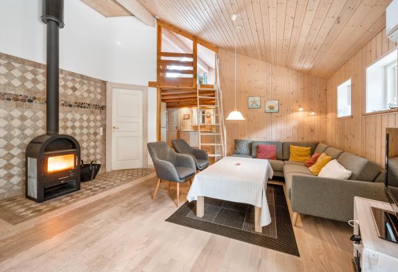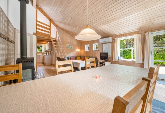 Insgesamt 3 Schlafzimmer und ein gemütlicher Schlafboden – welchen die Kinder sicherlich gleich als ihr Revier annehmen werden – bieten euch Platz für bis zu 6 Personen. Der offene Wohnbereich mit integrierter Küche und Essplatz kann von allen Familienmitgliedern gleichzeitig genutzt werden – hier könnt ihr gemeinsam Kochen, Spiele spielen, einen spannenden Film schauen oder einfach auf dem Sofa entspannen. Der Kamin sorgt für wohlige Wärme und eine perfekte Urlaubsatmosphäre.