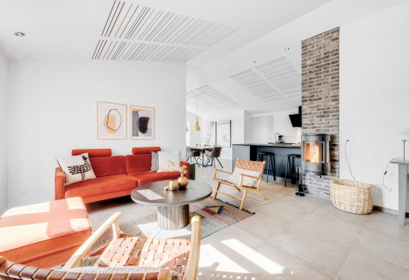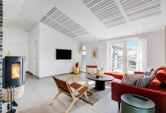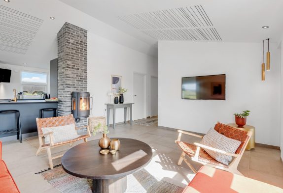 Das schöne Ferienhaus verfügt über ein großes Wohnzimmer mit integrierter Küche. Dies ist das Herzstück des Ferienhauses, wo Platz für eure ganze Familie ist – genießt einfach ein paar schöne und erholsame Tage miteinander. Das einzige, worüber ihr sich Gedanken machen müsst, ist, wer bereitet das Abendessen vor. Abends könnt ihr gemeinsam einen Film auf dem Fernseher im Wohnzimmer schauen, wenn jeder jedoch einen anderen Film sehen möchte, dann könnt ihr euch auf die Schlafzimmer verteilen, die ebenfalls über einen Fernseher verfügen.