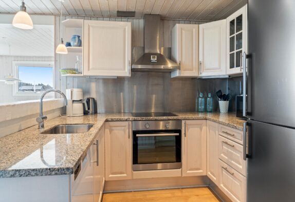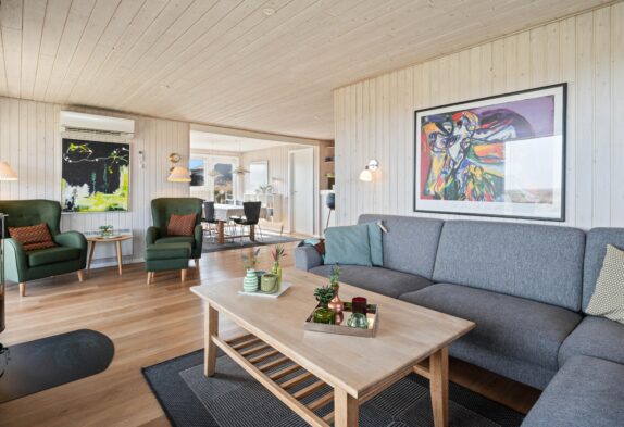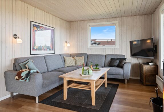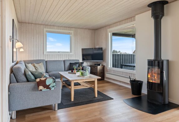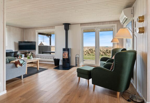 Genießt die schöne Aussicht von der Terrasse aus auf den Fjord, während die Kinder schaukeln, Sandburgen bauen oder mit den Hunden auf dem großen Grundstück herumtollen. Die Terrasse hat einen geschützen und überdachten Bereich, so dass ihr dort Unterschlupf findet, um so viel Zeit wie möglich an der frischen Luft verbringen zu können. Vielleicht habt ihr die Möglichkeit, Fahrräder mitzubringen? Dann kann das Auto in die große geschlossene Garage gestellt werden und den ganzen Urlaub stehenbleiben, denn ganz Holmsland Klit zeichnet sich durch schöne Rad- und Wanderwege aus und alle wichtigen Dinge können per Pedes erreicht werden.