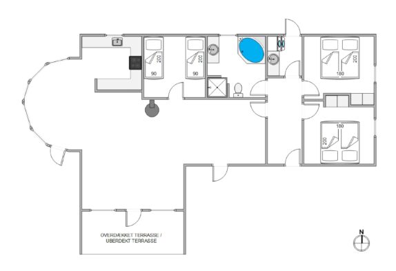 Ihr bekommt eine schöne Außenfläche um das Haus mit 2 Terrassen: die eine offen und die andere eingezäunt und teilweise überdacht. Deswegen könnt ihr an vielen Orten Sonnenbaden, und an den warmen Sommerabenden könnt ihr den Grill anzünden und ein leckeres Grillessen genießen. Auf dem Rasen gibt es viel Platz für die Kinder zum Spielen.