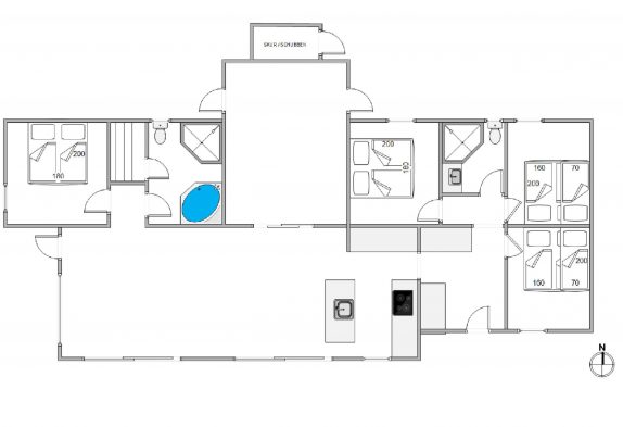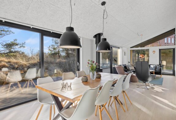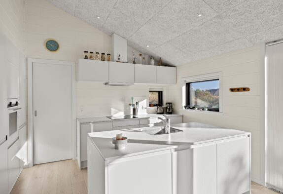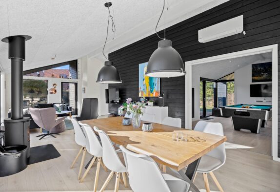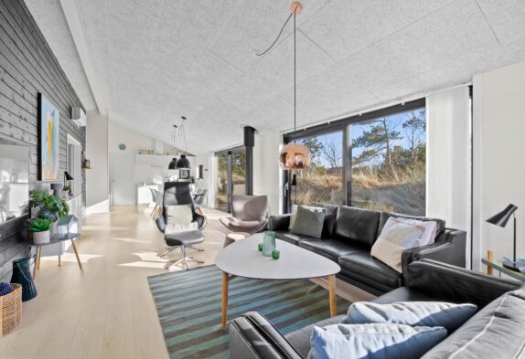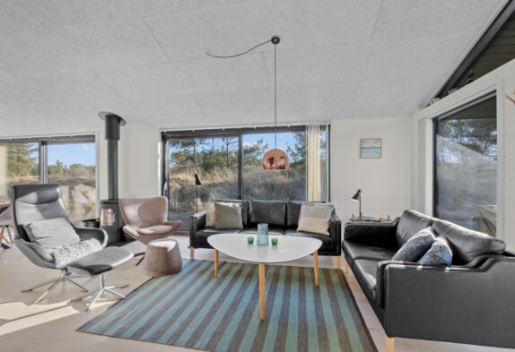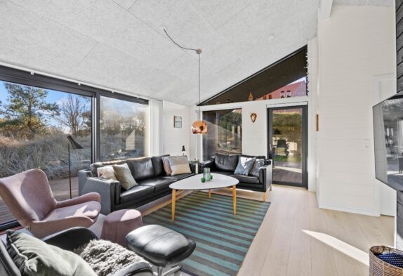Auf Peter Malersvej 1 kann eure ganze Familie einen schönen Urlaub nah an der Natur verbringen, während die moderne und qualitätsbewusste Einrichtung des Ferienhauses den Urlaub extra luxuriös und traumhaft macht. Wenn ihr in den bequemen Sitzmöbeln des Wohnzimmers Platz nehmt, sorgt der Kaminofen dafür, eine stimmungsvolle Wärme auszubreiten. Die Zusammenlegung von Wohnzimmer und Wohnküche schafft mehr Geselligheit im Haus. Die großen Fenster ermöglichen eine tolle Aussicht zum Himmel und in den Garten.