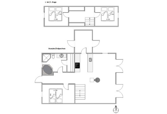Die zweistöckige Ferienwohnung in Blåvand bietet Platz für bis zu 6 Personen – aber auch euer Hund ist willkommen. Die Wohnung ist modern eingerichtet mit schönen Schlafzimmern, einem klassischen Holzofen und einer gut ausgestatteten Küche mit Geschirrspüler. Hier könnt ihr es euch gemütlich machen und ein paar Brettspiele spielen.