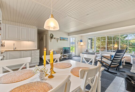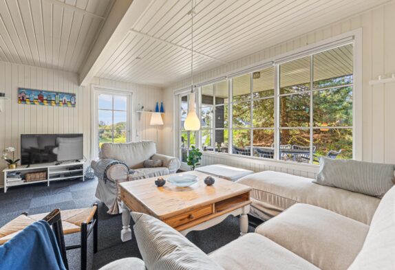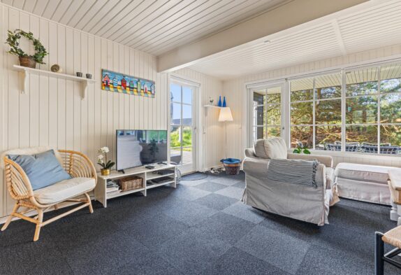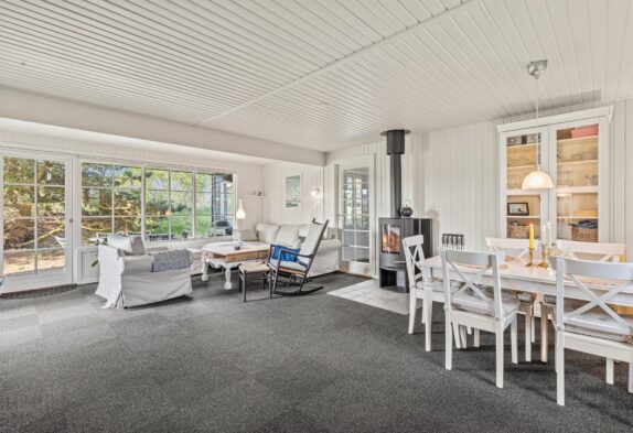 Im Mosevej 4C werdet ihr sofort vom einladenden Interieur mit weißen Wänden und Decken und komfortablen Möbeln begrüßt. Der Schwerpunkt wurde auf die Gemütlichkeit gelegt, und die hellen Farben zusammen mit den großen Fensterbereichen öffnen das Ferienhaus und schaffen eine rundum entspannte Urlaubsatmosphäre.
