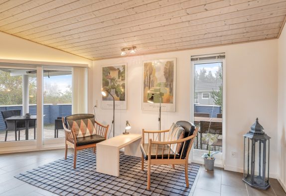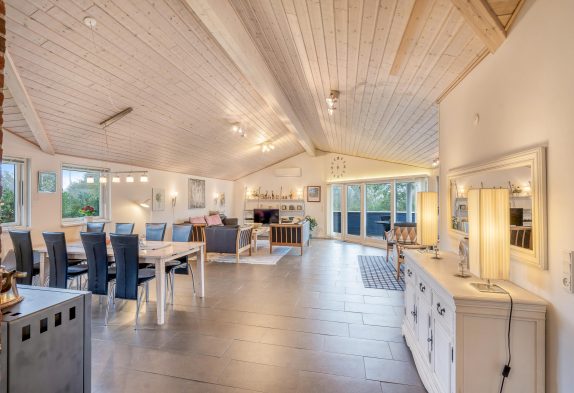 Das charmante Ferienhaus verfügt über 133 Quadratmeter. Hier wird der Rahmen für einen gemütlichen Familienurlaub in einer ruhigen Urlaubsregion gelegt. Die Einrichtung ist schön und einladend mit Liebe zum Detail. Die hellen Farben und durch die großen Fenster wirkt das Haus noch größer und sie schaffen vor allem im großen Wohnzimmer viel Platz.