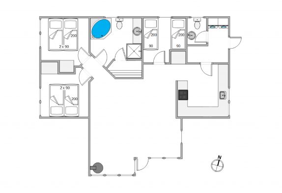Das Ferienhaus im Nordskrænten 68 verfügt über 3 Schlafzimmer. 2 davon sind mit Doppelbetten ausgestattet, während das 3.Schlafzimmer mit 2 Einzelbetten eingerichtet ist. Das Badezimmer verfügt über moderne Annehmlichkeiten wie eine Fußbodenheizung, die für warme Füße sorgt, egal zu welcher Jahreszeit. Ein zusätzliches Extra ist der Whirlpool, der für entspannte Momente nach einem langen Tag sorgt und die Sauna. Zusätzlich gibt es eine Gästetoilette, die zusätzlichen Komfort für alle Gäste bietet.