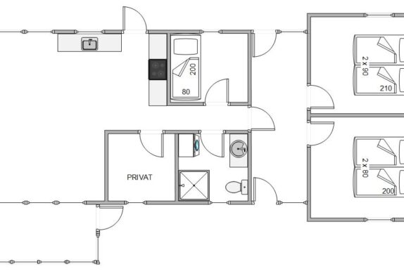 Kommt herein und stellt erstmal im geräumigen Flur eure Koffer ab, um das Haus zu erkunden. Auf der rechten Seite vom Flur befinden sich zwei Schlafzimmer mit jeweils einem Doppelbett, wo sowohl Wände und Fußböden mit Holz bekleidet sind. Neben den beiden großen Schlafzimmer findet ihr auch ein Zimmer mit einem Einzelbett.