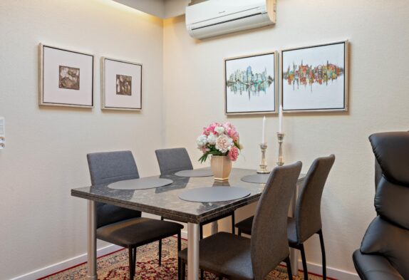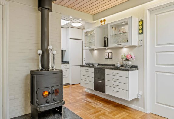 Gerade in der etwas kühleren Jahreszeit sind Wärmepumpen perfekt, um energiesparend aufzuheizen. Abends hingegen bietet es sich natürlich an, den Kamin anzuheizen und es sich vor dem TV bei eurer Lieblingsserie bequem zu machen. Ein zweites Wohnzimmer befindet sich im Wintergarten, hier kann Karten gespielt werden oder aber Sudoku – alles, wozu ihr gerade Lust habt. Die hochwertige und wirklich schöne Küche bietet alle gewünschten Annehmlichkeiten.